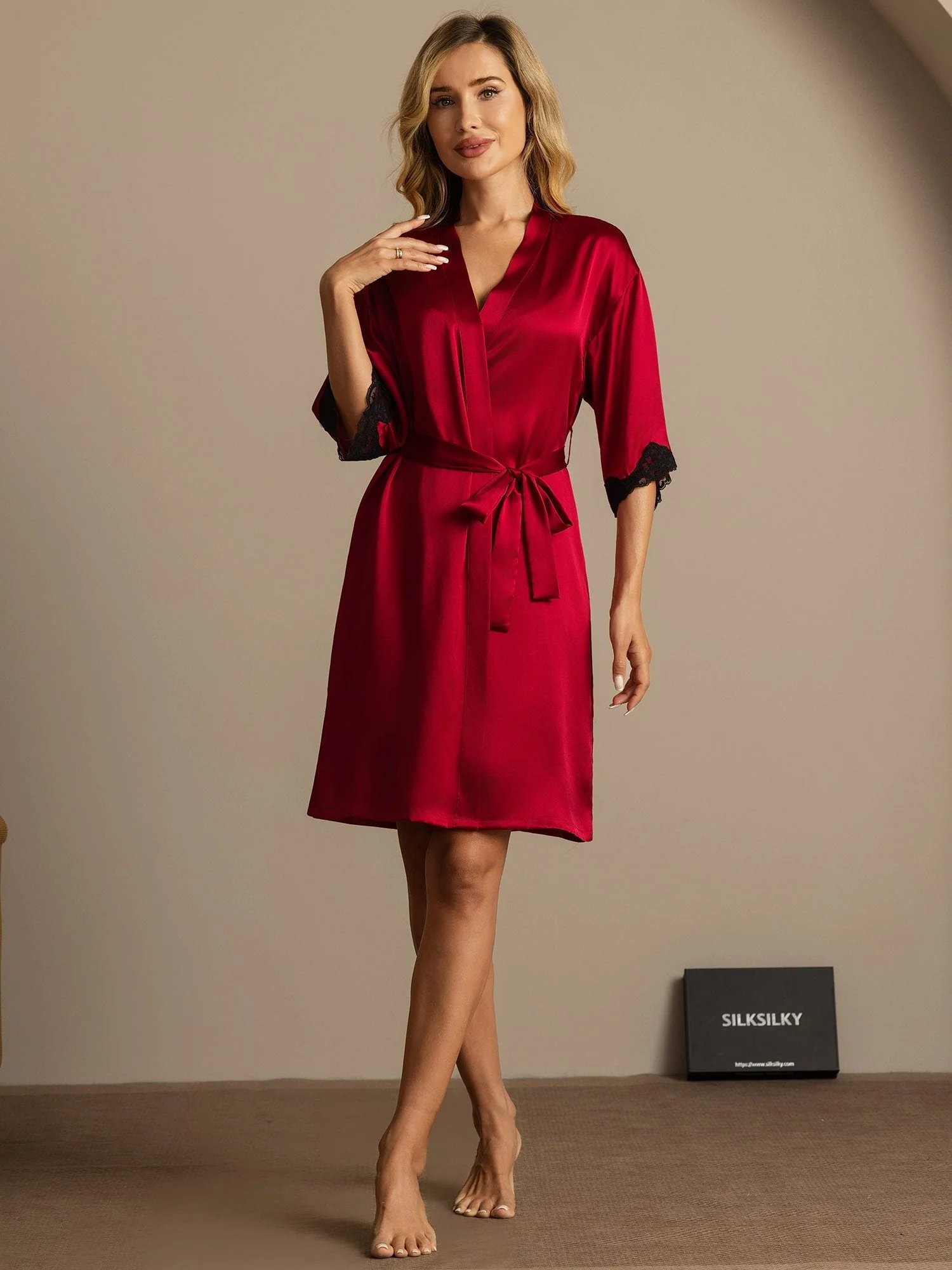 Bata de Mujer de Seda Pura con Diseño de Encaje